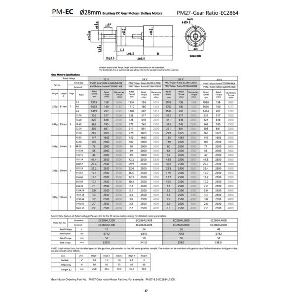Key Specifications for this Ø28mm dc brushless gear motor: